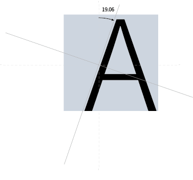 以 源石黑體 Light 字型中 A 字元角度,傾斜 X Y 軸